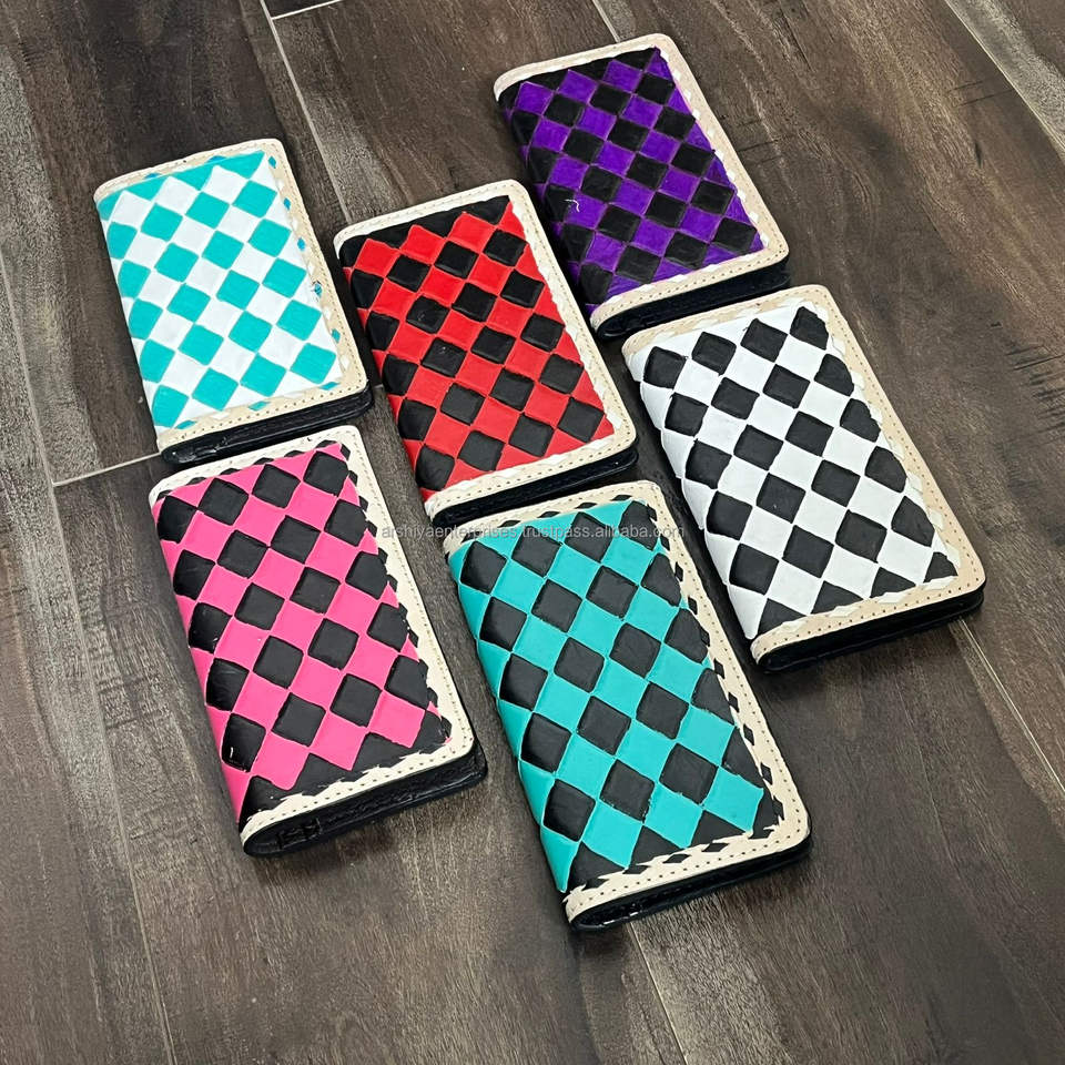 Product name:Hand Tooled Leather Checkered Long Bifold Wallets