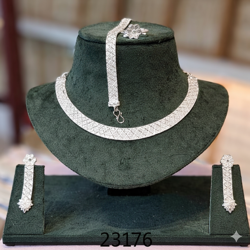 Latest MOLL JEWELLERS Indian 14K Gold Plated Zinc Alloy Zircon Floral Necklace Earring Set Women Third Party Certified Jewelry