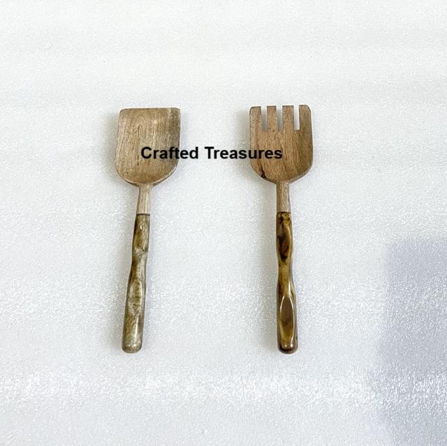 Latest Manufacturing Terrazzo & Wood Joined Handle Cutlery Salad Server Set Top Quality Designer Kitchen Gadgets Cutlery Set