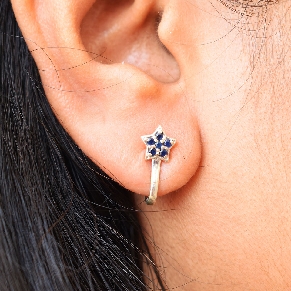 Latest Minimalist Sterling Silver Chunky Star Hoop Earrings Trending Pink Sapphire Gemstone Women's Fine Jewelry Wholesale Gift
