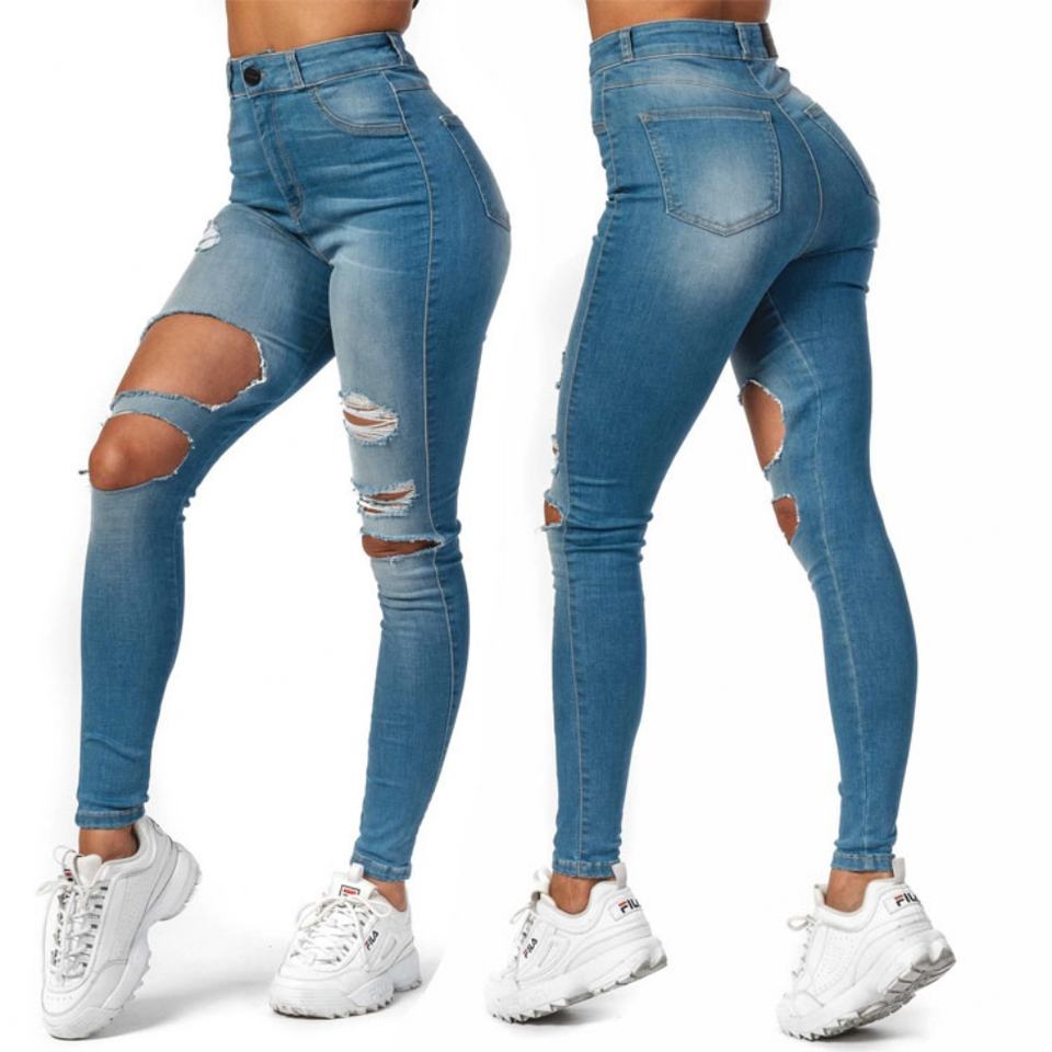 Latest Most Popular Street Wear Distressed Big Rips Stretch High Waist Fashion Skinny Women Jeans