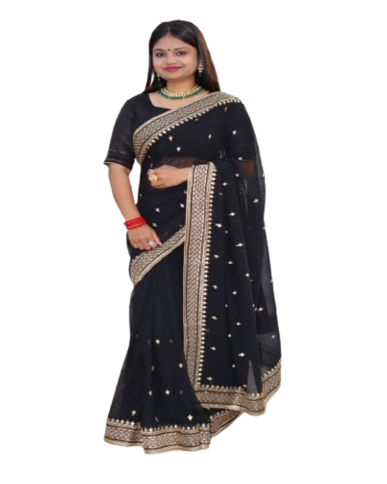 Work:Zari And Swarovski Diamond Work Border Saree