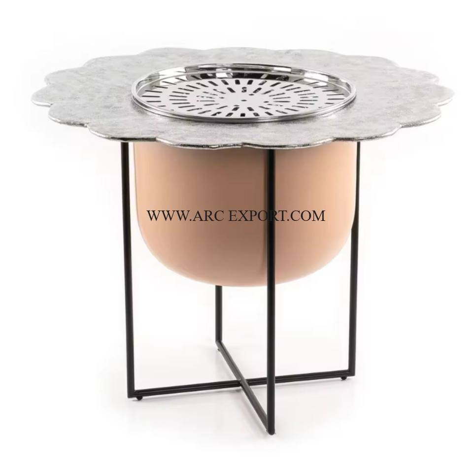 Latest New Collection Grey Powder Coated Fancy Dallah Heater Exclusive Quality Large Size Home Dallah Heater Black Iron Stand