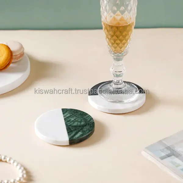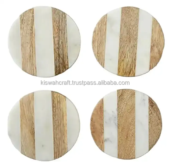 Latest New Design Eco-friendly Classic Wood Marble 4 Inch Tea Table Bar Coasters for Beer Cans Glasses Mats Pads Accessories