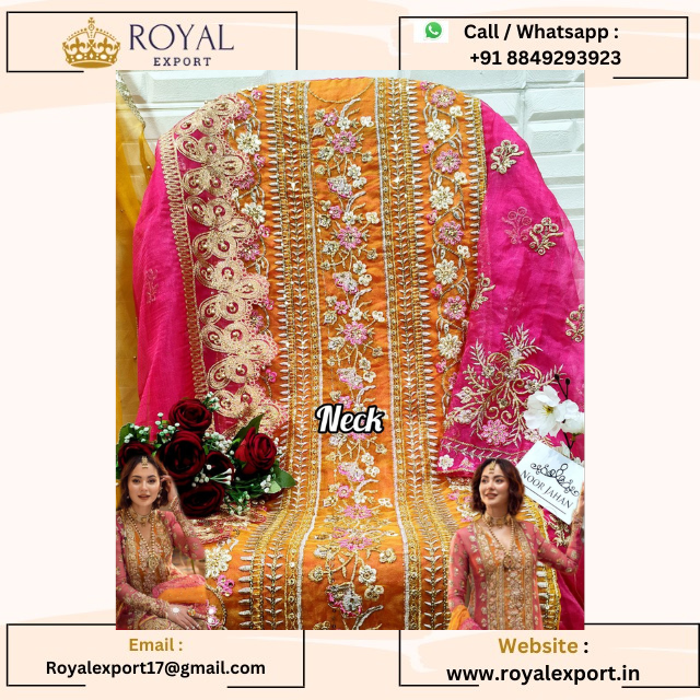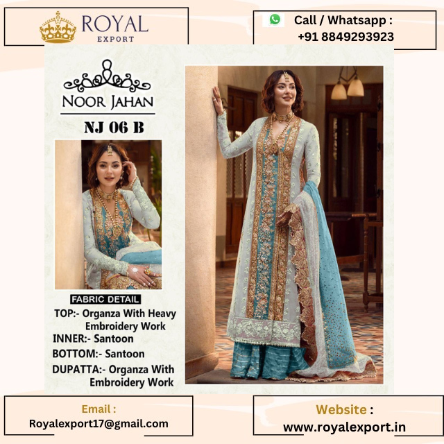 Latest New Designer Noor Jahan Presents Organza Fabric With Heavy Embroidery Work Suit Collections Wholesale by Royal Export