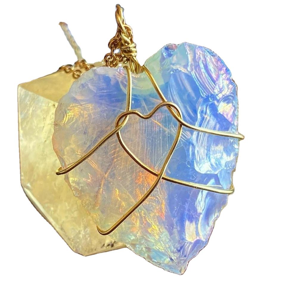 Latest New Stones Healing Oval Wrap Pendant Necklace Natural Stone Crystals Wire Wrapping Stone Design Gemstone Carved Sale