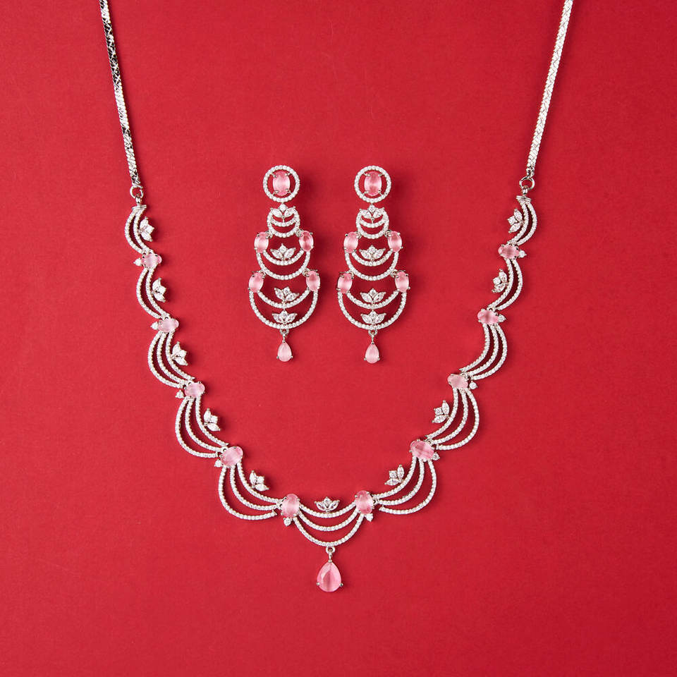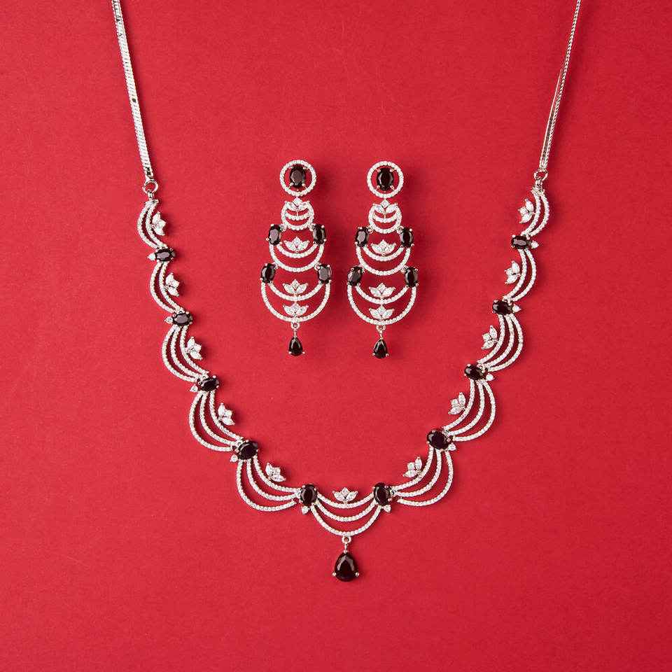 Latest Online Export Quality CZ Classic Necklace Set with Rhodium Plating Fashionable Necklaces