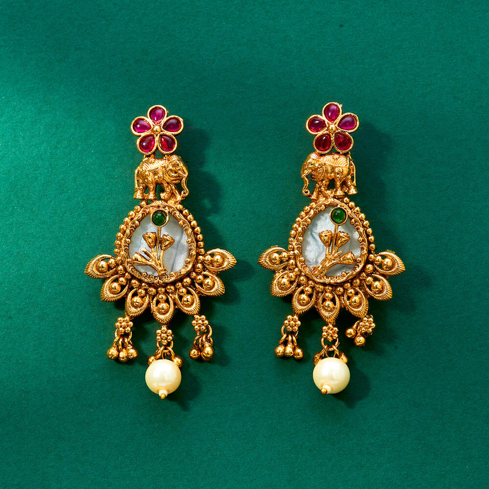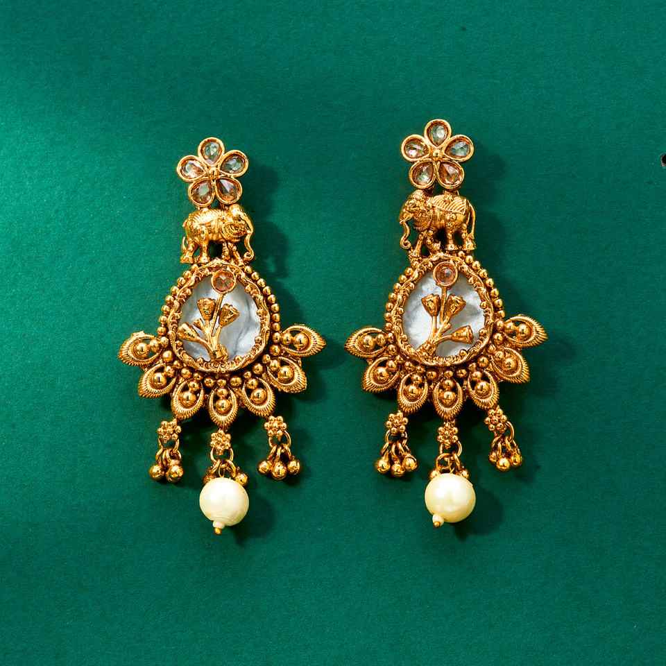Latest Online Export Quality Gold Plated Antique Classic Mother of Pearl Fashion Hoop Earrings