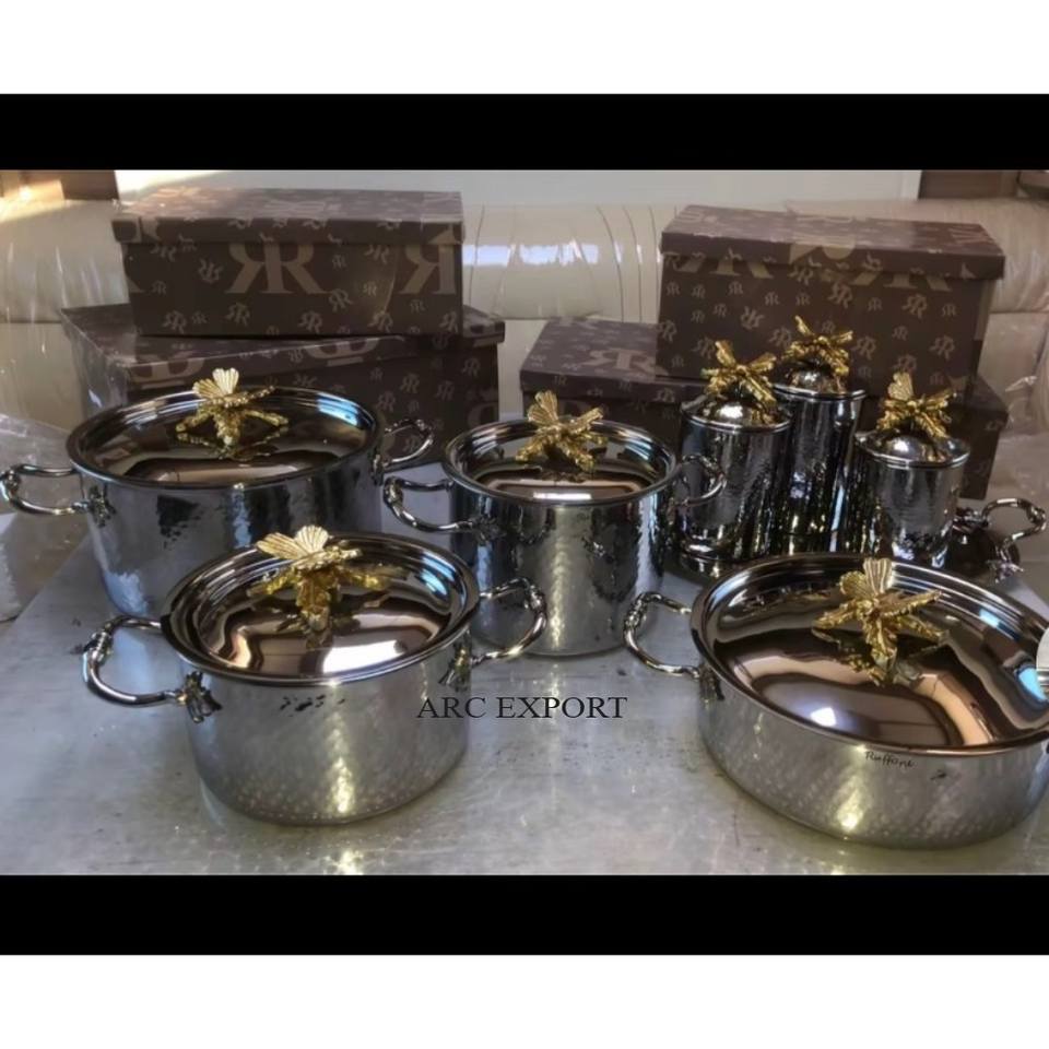 Latest Pattern Arrival High Grade Gold Plated Prime Quality Stainless Steel Hammered Texture Butterflies Top Lid Casseroles