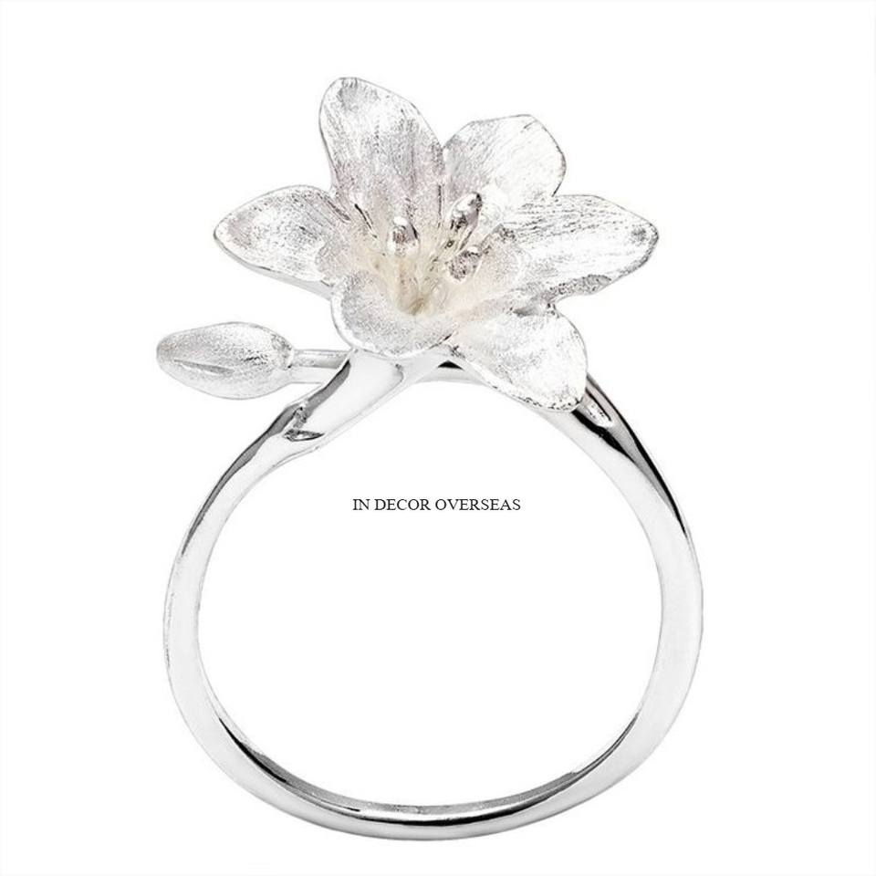 Latest Pattern Arrival Silver Shiny Polished Flowers Designer Attractive Look Superior Quality Metal Luxury Napkin Ring Tabletop