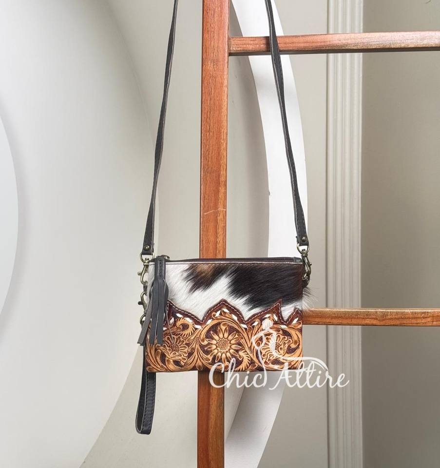 Product name:Sunflower Hand Tooled Leather Wristlet Tassel Pouch