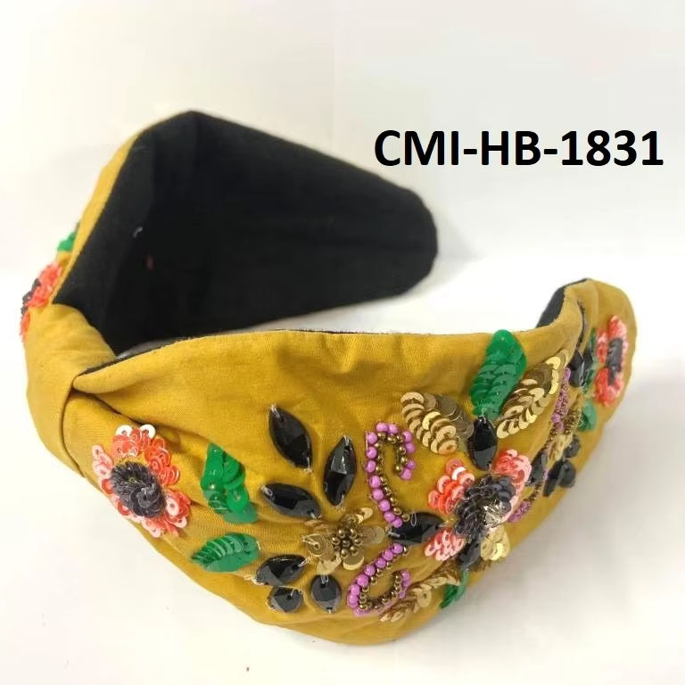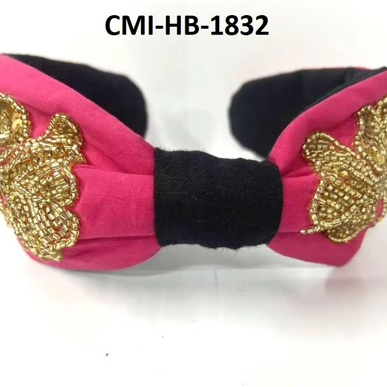 Latest Pink Embroidery Hairband with Pearls Women's Bridal Headband Fashionable Colorful Prachi Design CMI-BG-008