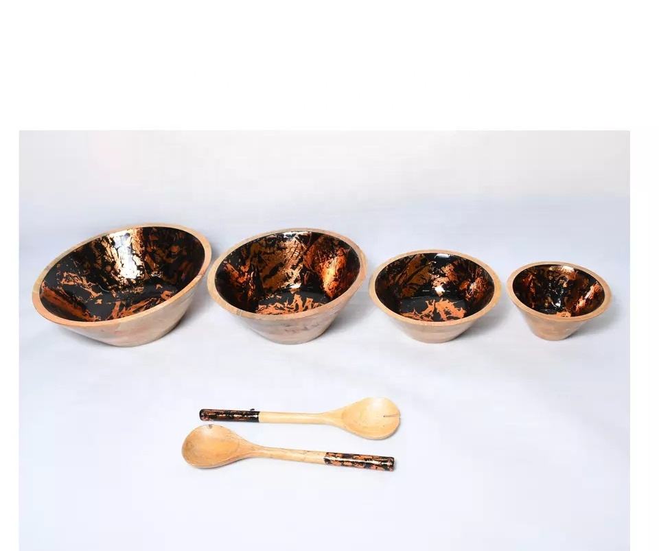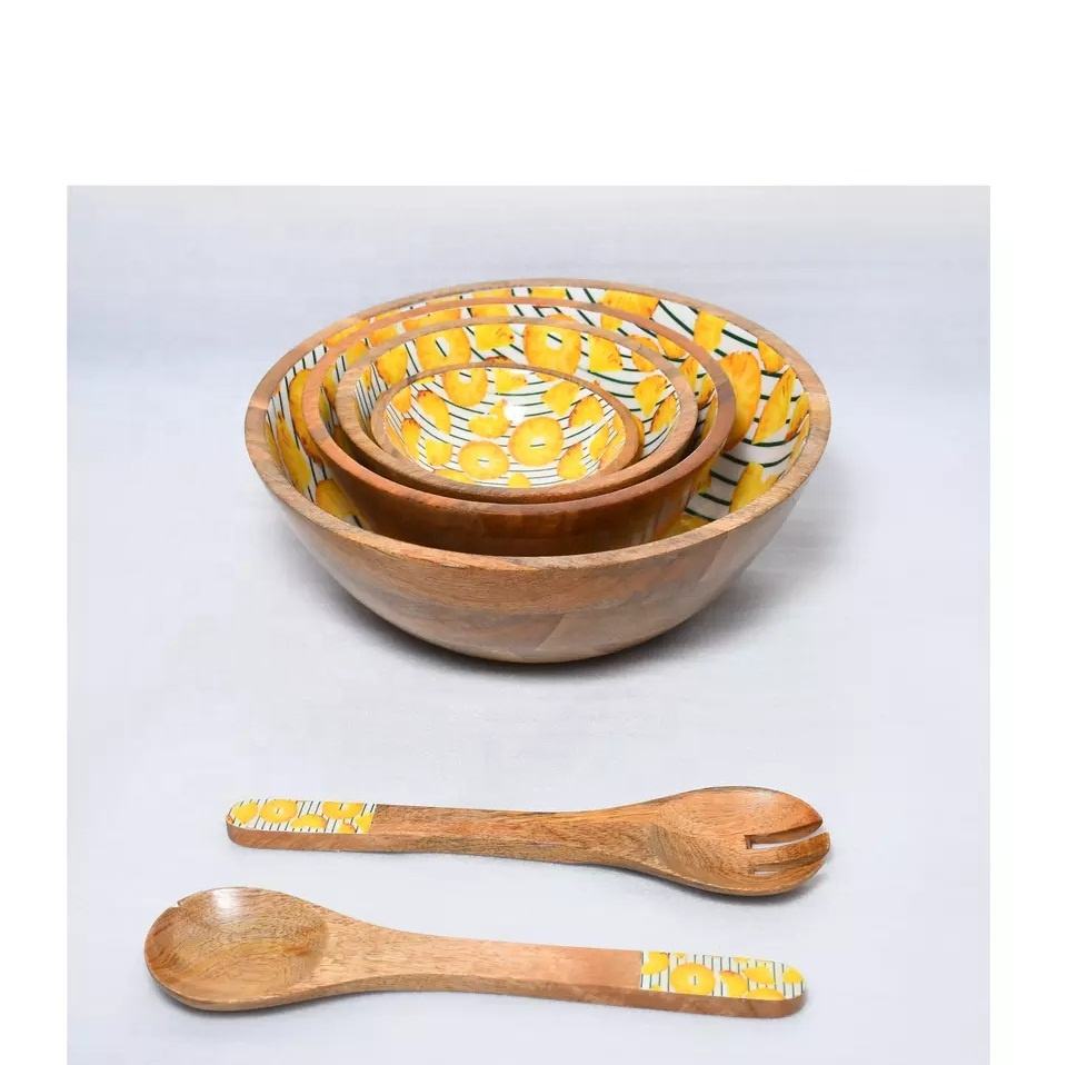 Latest Platter Look Enameled Print Wooden Bowl Salad Bowl Antique Design Kitchen Hotel Home Restaurant Use At Competitive Price