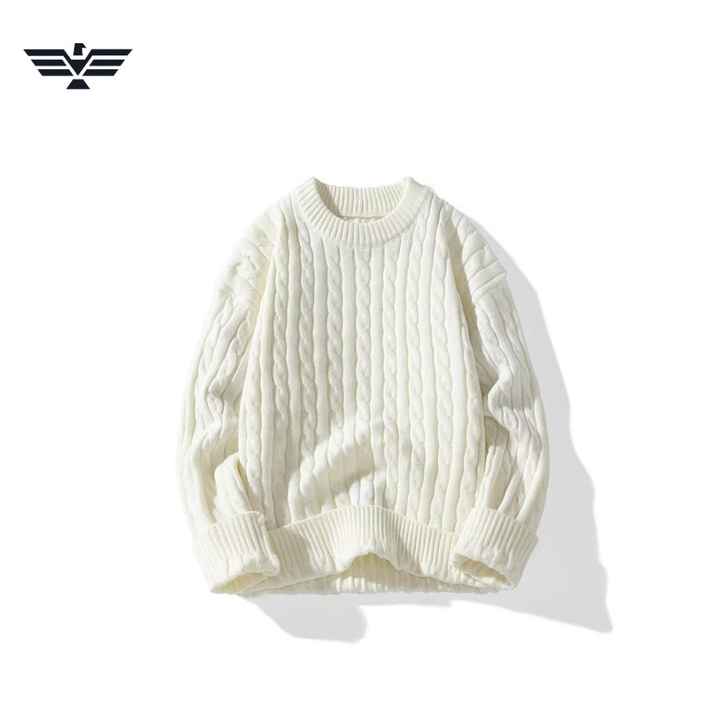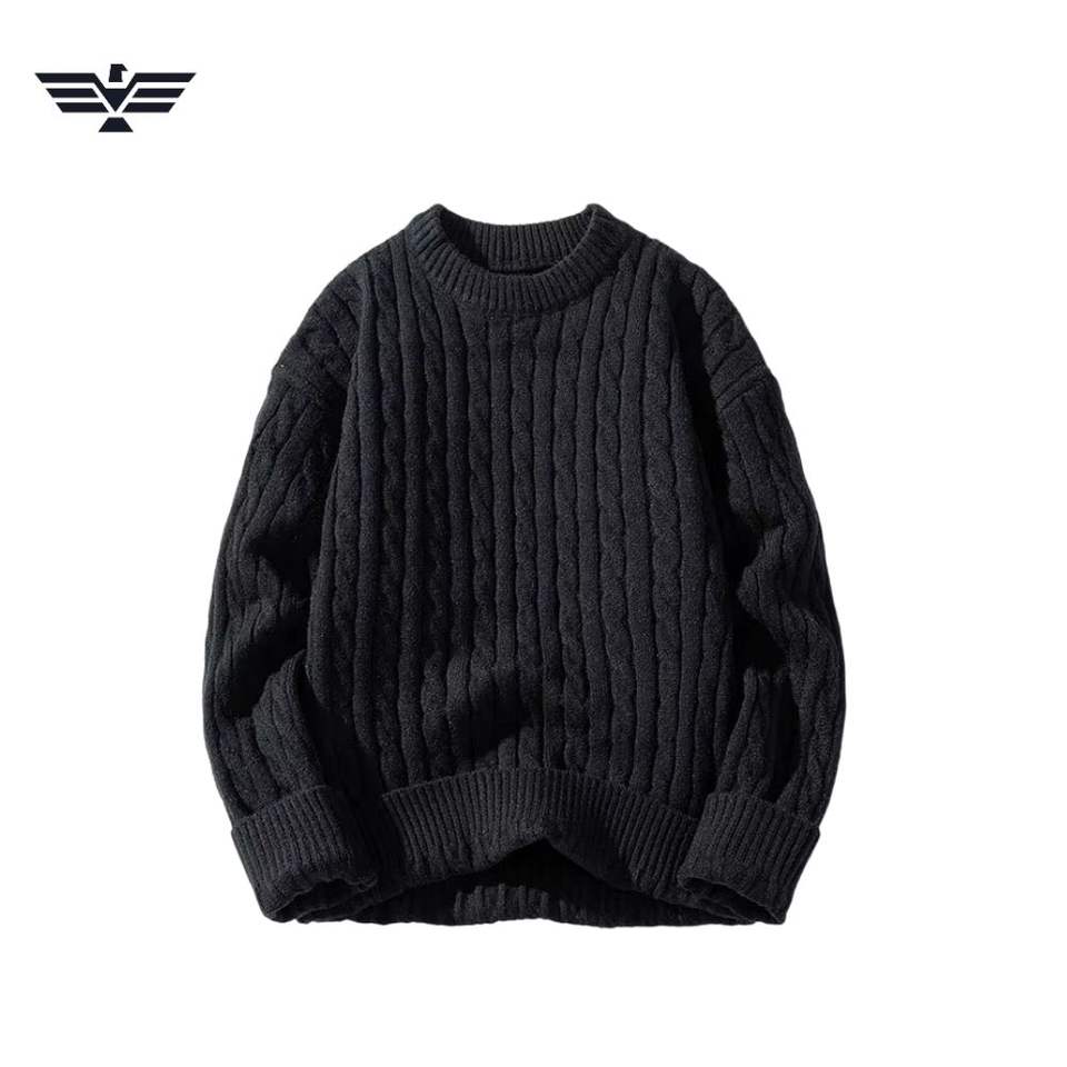 Latest Premium Warm 100% Cotton Men's Cable Knit Crew Neck Pullover Anti-Wrinkle Anti-Shrink Anti-Pilling Thick Winter Sweater