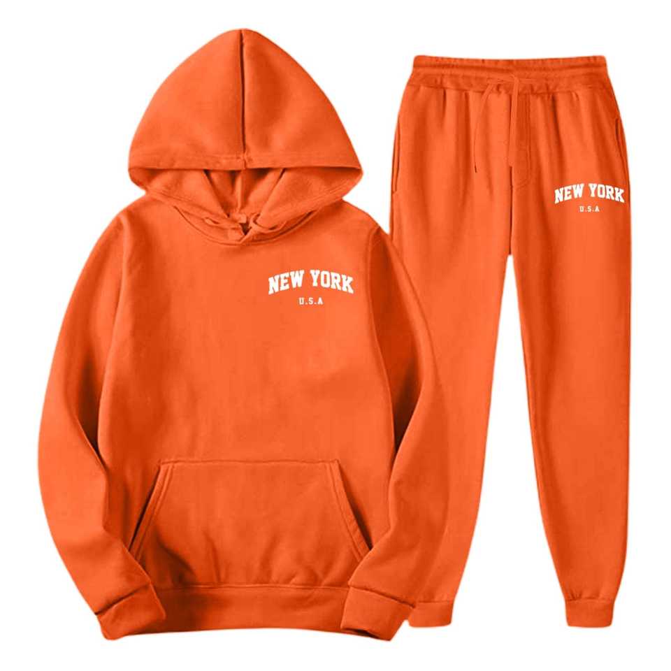 Latest Premium Warm Fabric Men's Orange Tracksuit For Winter Wear Hoodie & Sweatpants Available At Wholesale Price