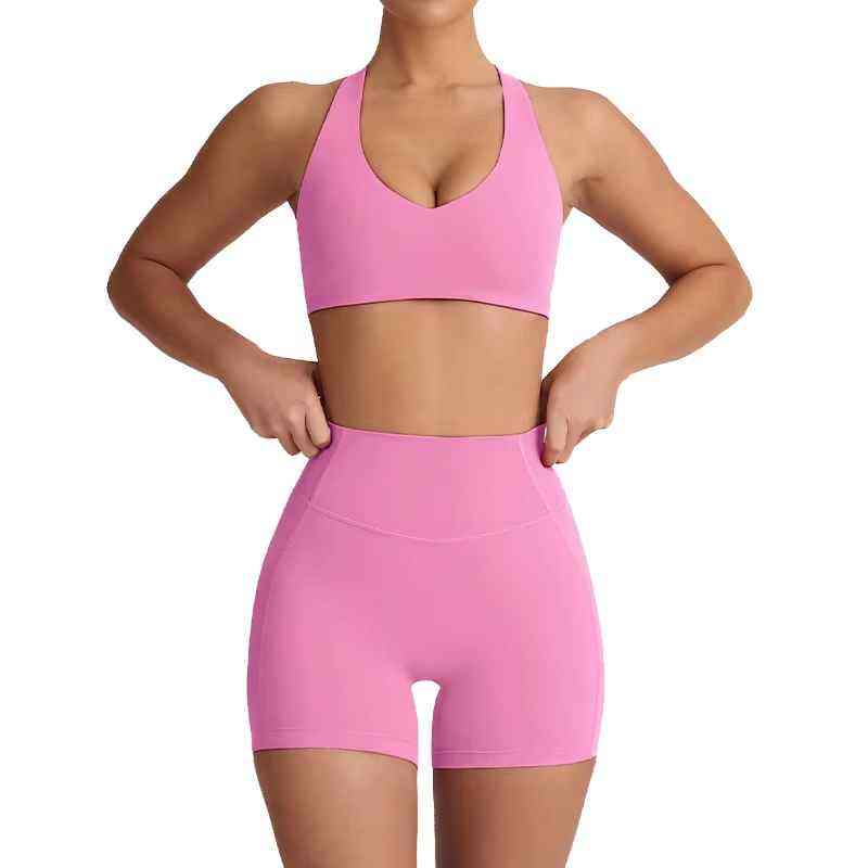 Latest Product Seamless Waterproof Lightweight Breathable Naked Feel Hollow Out Sports Bra 2 Piece Yoga Workout Shorts Yoga Set