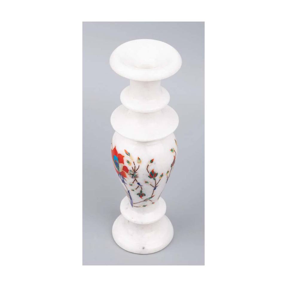 Makrana Marble With Natural Indian Stone Inlay Design Flower Vases