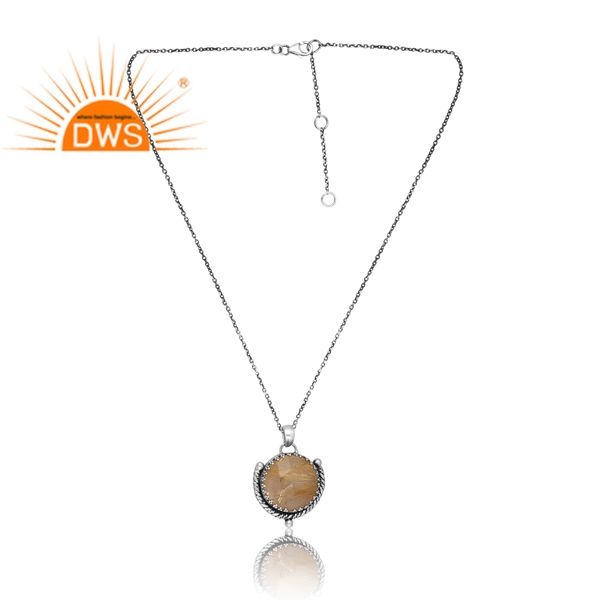 Latest Selling 925 Sterling Silver Natural Golden Rutile Gemstone Pendant Necklace Custom Jewelry For Women Gift For Her