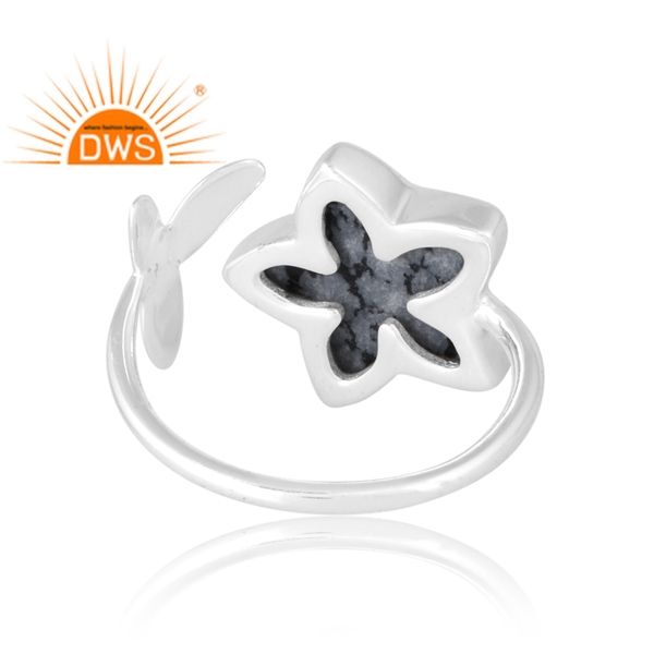Latest Selling 925 Sterling Silver Natural Snowflake Obsidian Gemstone Ring Custom Jewelry For Women Gift For Her