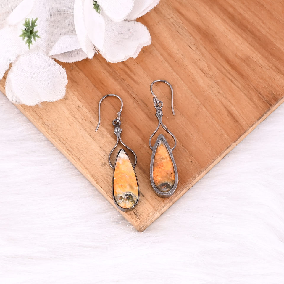 Latest Selling Brass Earring Black Ruthenium Earrings Bumble Bee Jasper Gemstone Dangle Earring Custom Jewelry Manufacturer