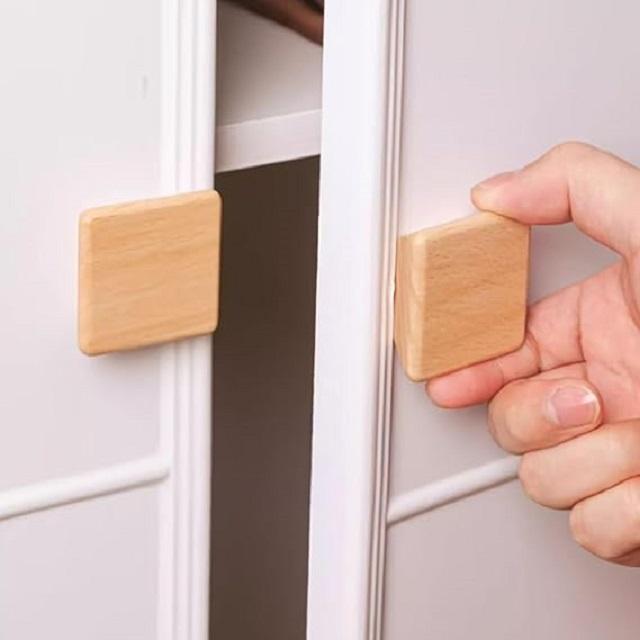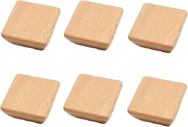 Set 6 Unfinished 45mm Square Shaped Natural Wooden Cabinet Knobs Wood Pull Handles Screws Eco-Friendly Lightweight Modern Decor
