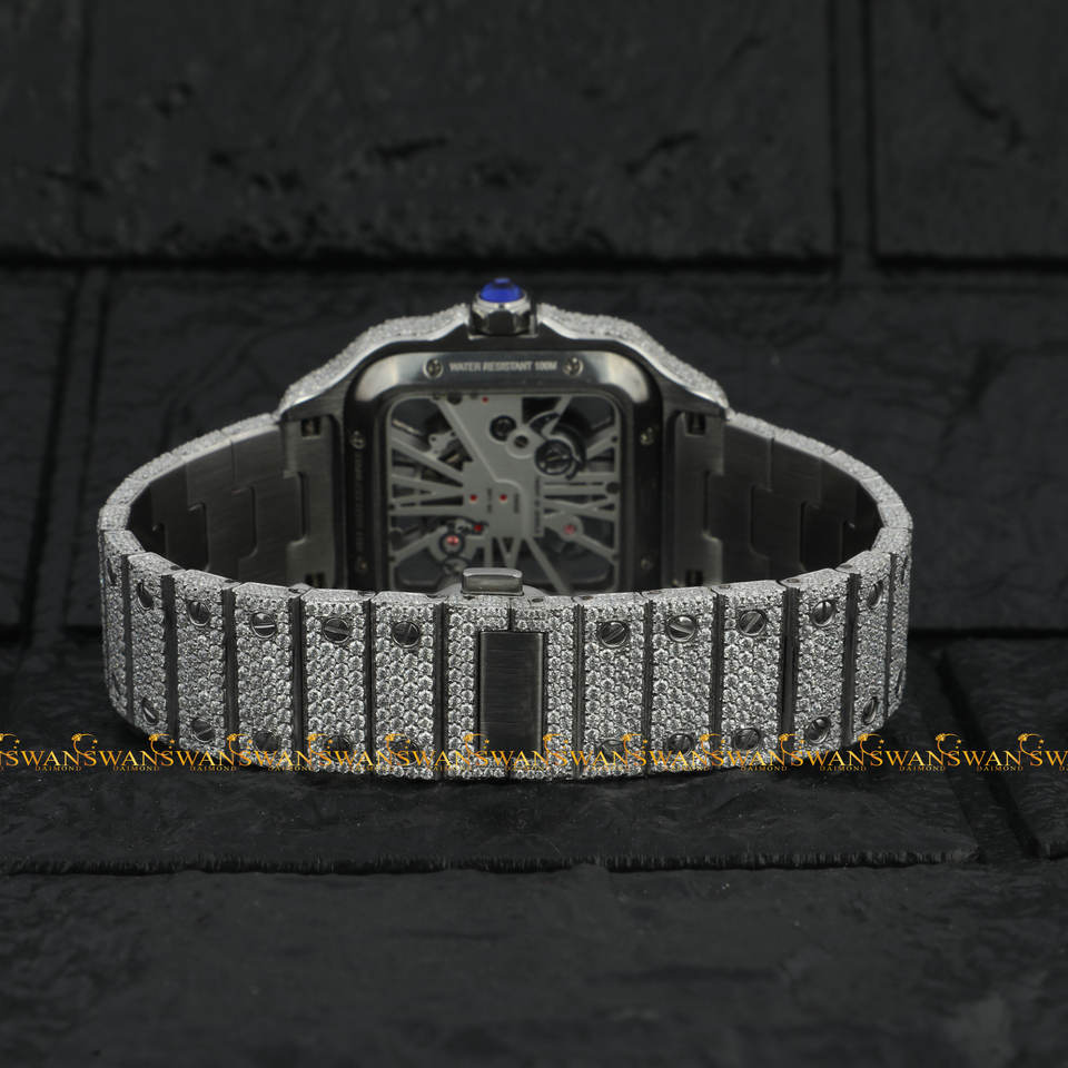 Latest High Quality Stainless Steel Glass Moissanite Hip Hop Skeleton Watch for Men Enhanced Vvs Clarity Parties