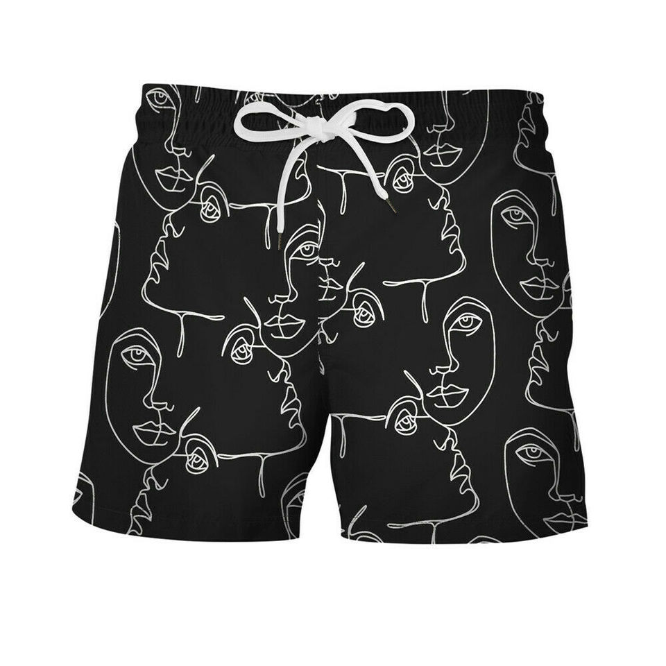 Latest Style New Arrival Full Sublimated Printing Black With White Drawstring Surf Board Shorts Men Swimwear Shorts