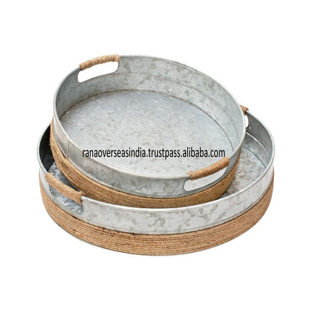 Product Name:Latest Style Pair of Galvanized Serving Trays with Rope Handles
