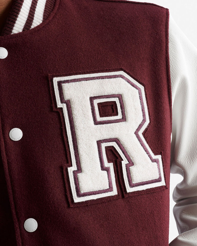 Latest Stylish maroon Ribbed collar With Cuff Varsity Jacket For Men Button Letterman College Baseball Bomber Jacket