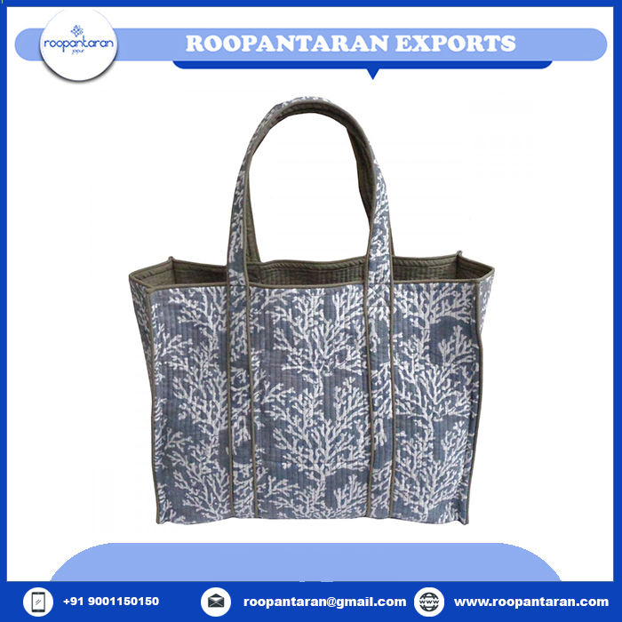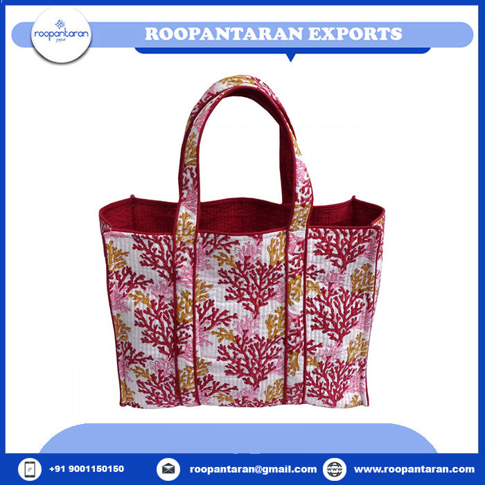 Stylish Organic Cotton Tote Bag Traditional Hand Block Printed Quilted Design with Inner Pockets Latest Evening Bags on Sale