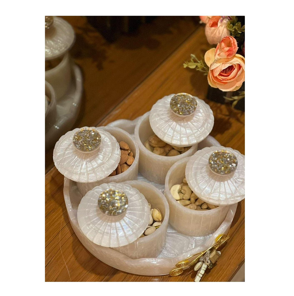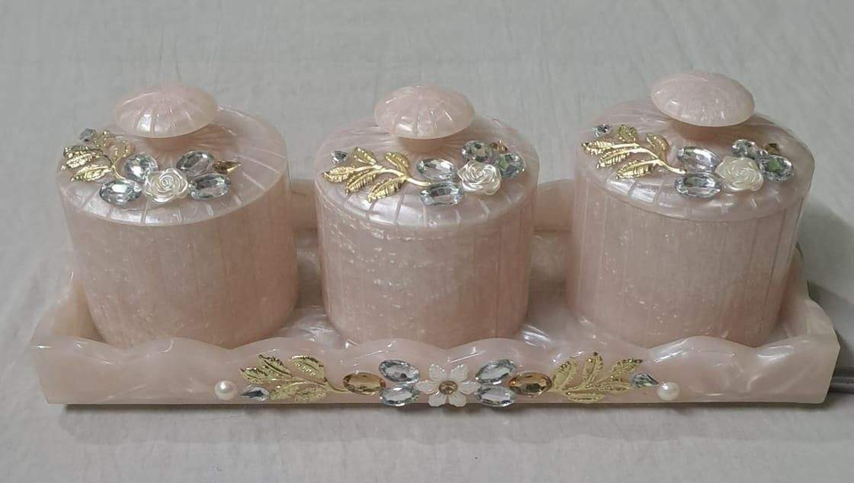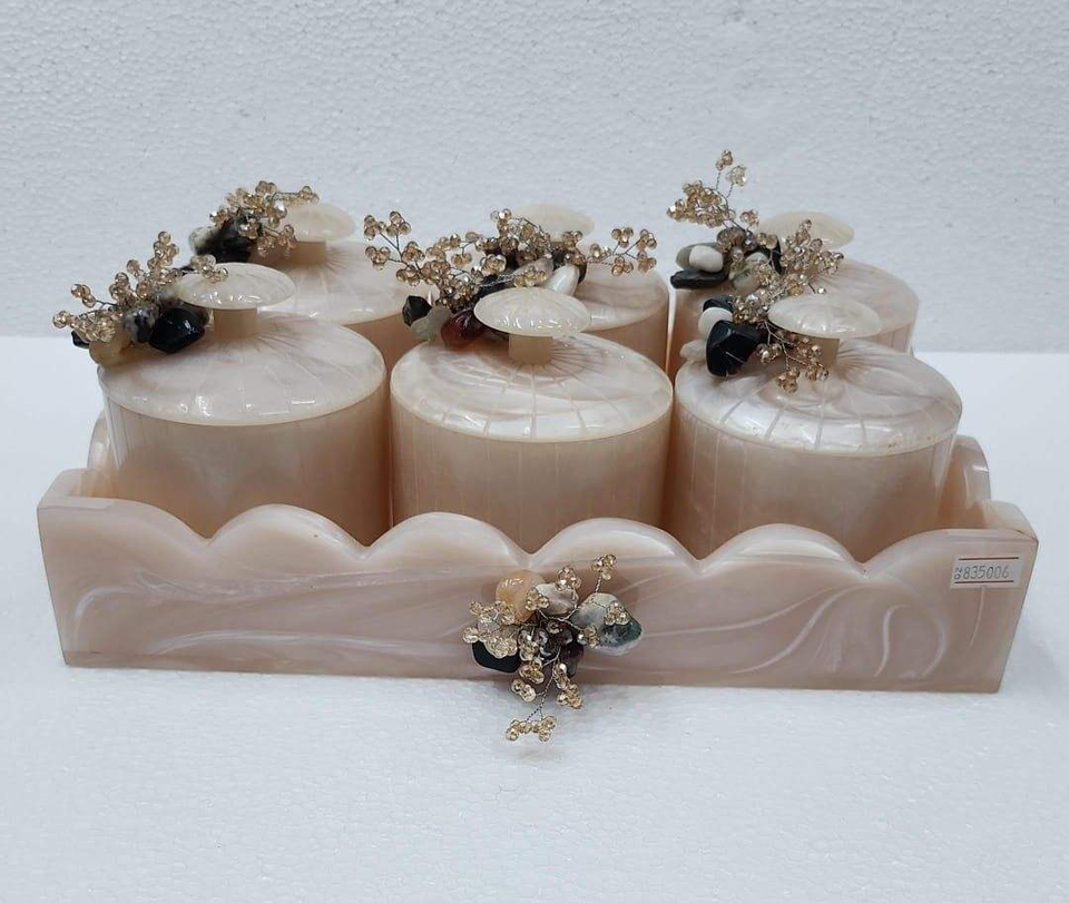 Latest Table Ware Epoxy Resin Dry Fruits Jars Set With Round Tray Top Selling Handmade Standard Quality In India