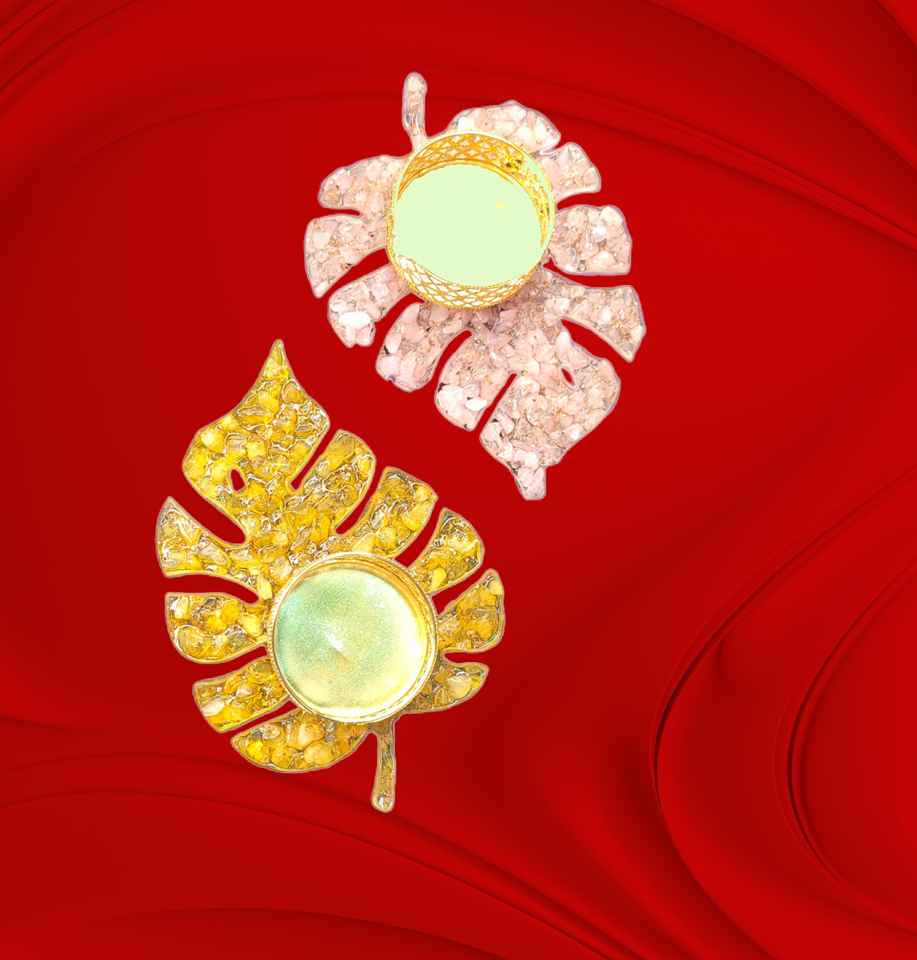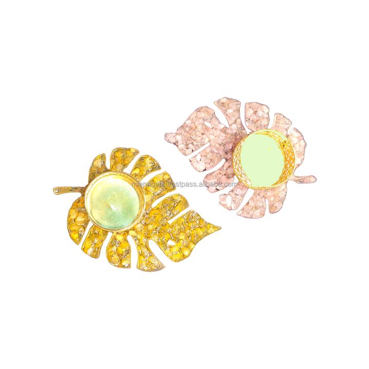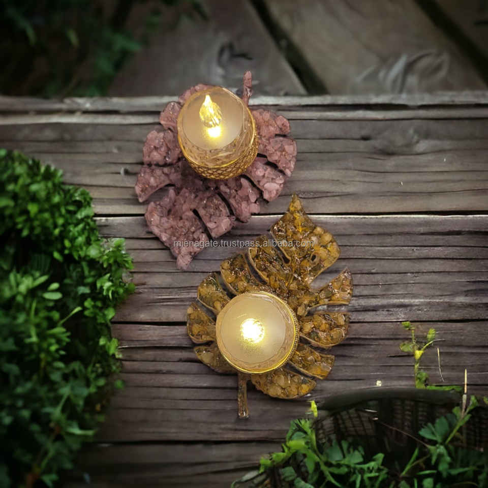 Latest Tealight Leaf Shape Orgone Candle Holder with Crystal Chips for Christmas Diwali Gift Home Decoration in Wholesale