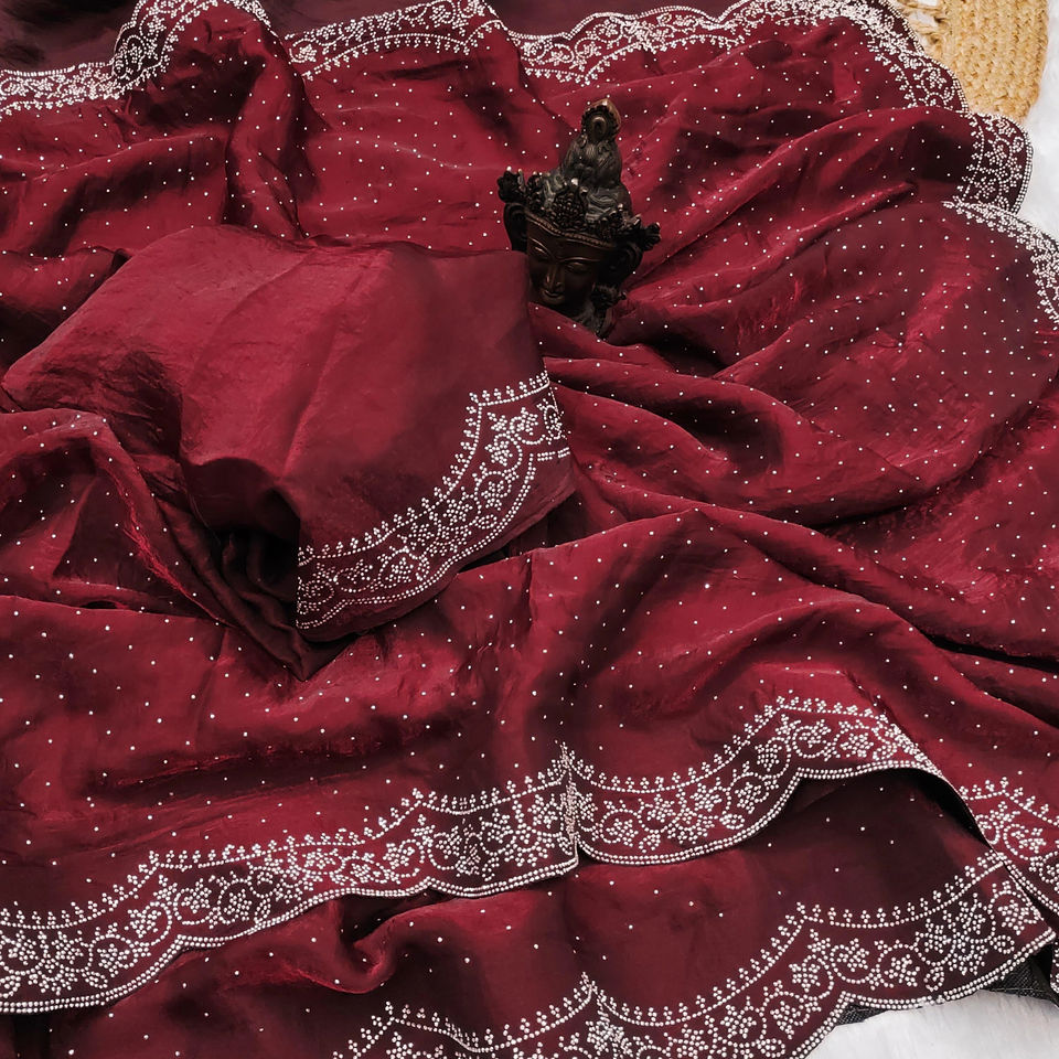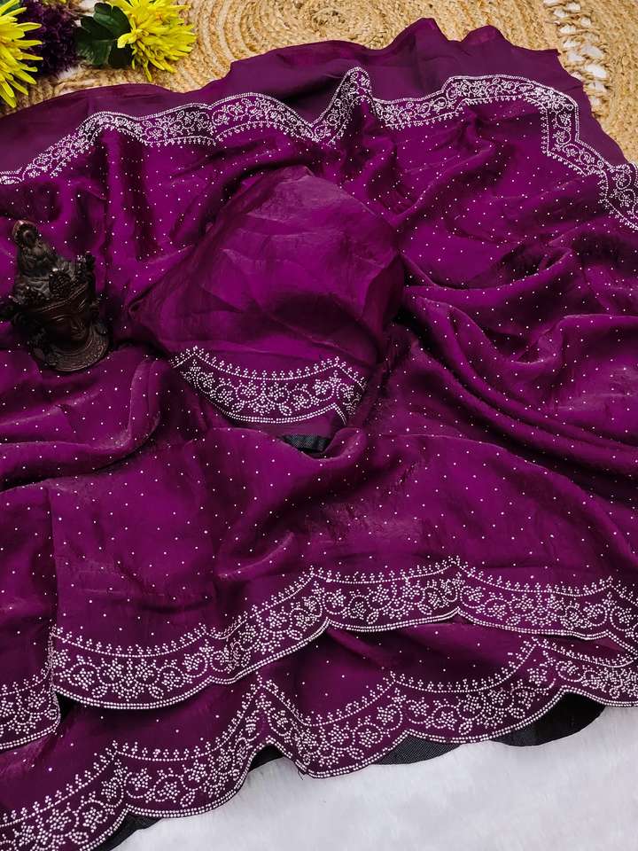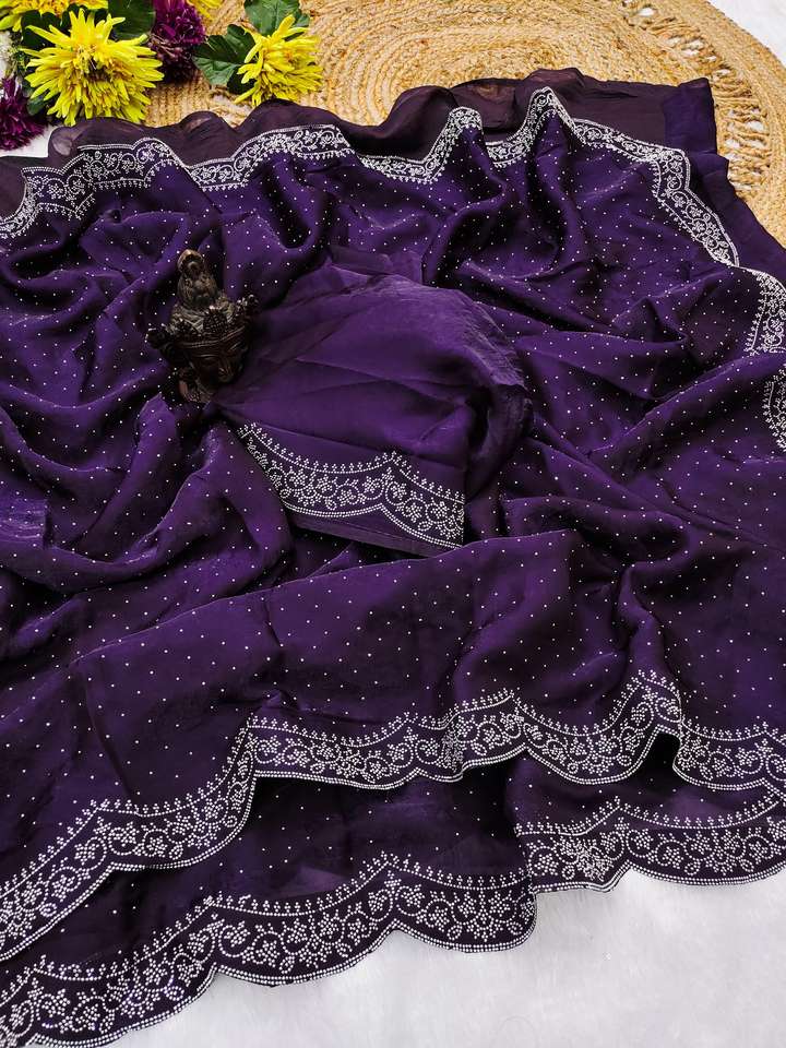 SAREE WORK:Original Swarovski Diamond work in saree