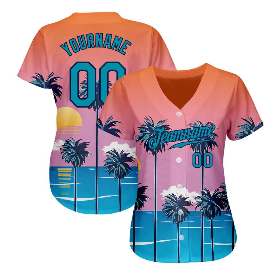 Latest Trend Hawaii Sublimated Custom Logo Button up Polyester Breathable Baseball Jersey Sublimation Softball Shirts