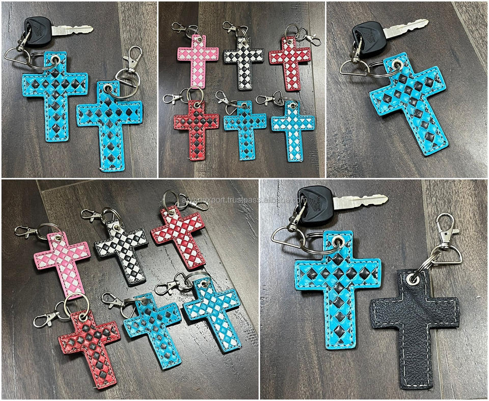 Product name:Hand Tooled Checkered Leather Key Chian
