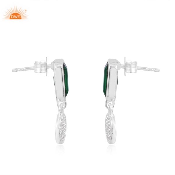 Latest Trending Fine Sterling Silver Doublet Zambian Emerald Quartz & CZ Gemstone Stud Earring Custom Jewelry Manufacturer