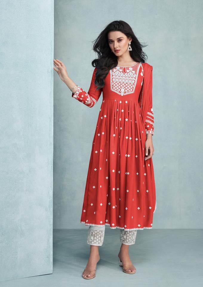 Product Name:Latest Trending Rayon Viscose With Embroidery Kurti Pant