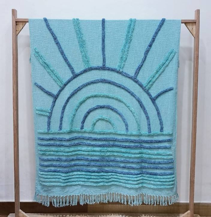 Latest Trendy 100% Cotton Tufted Throw Blanket Jacquard Embroidered Pattern Eco-Friendly Living Room Decor