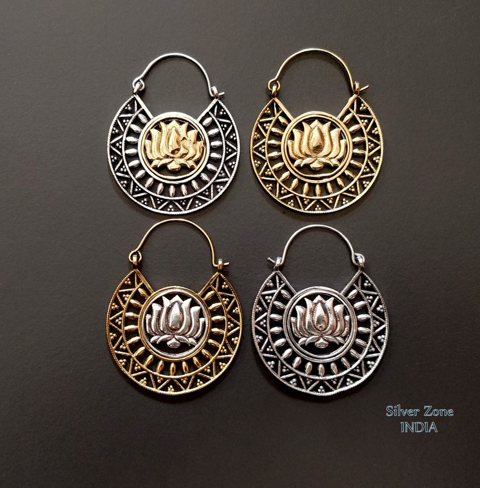 Latest Unisex Ethnic Antique Bronze Alloy Hoop Earrings Indian Handmade Brass Silver Plated for Parties Weddings and Gifts