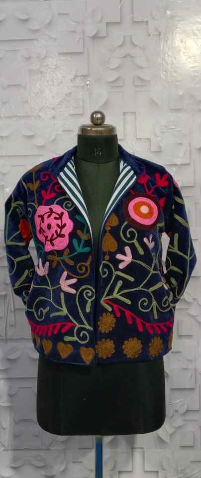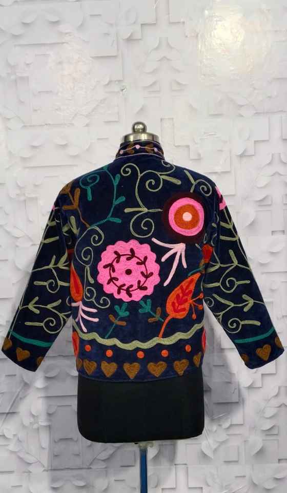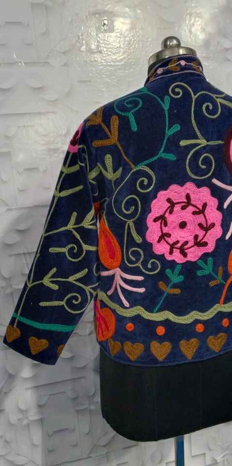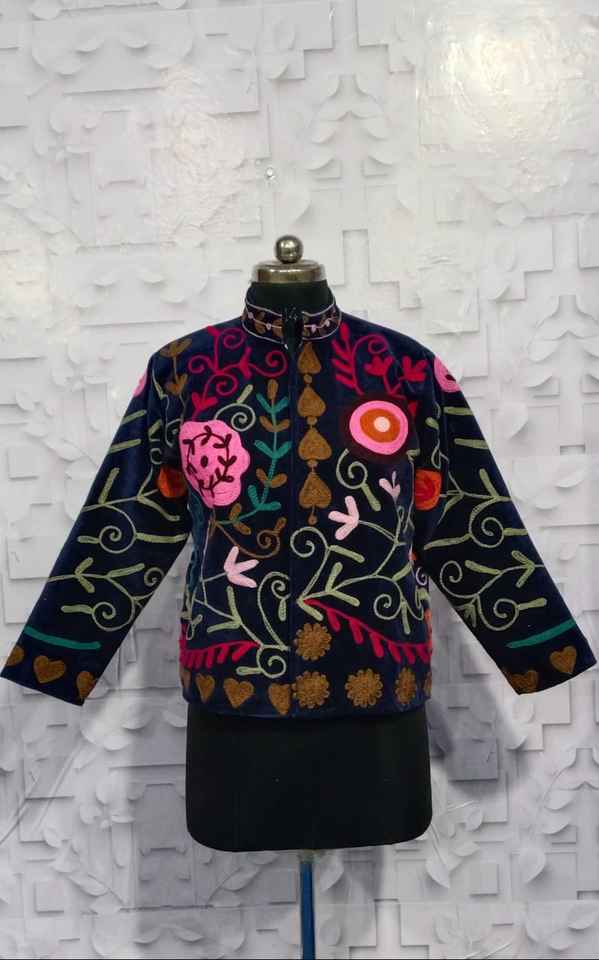 Latest Vintage Long Suzani velvet Jacket Women Elegant Casual Hand Embroidered Winter Coat Cozy Cardigan Dress Beach Free