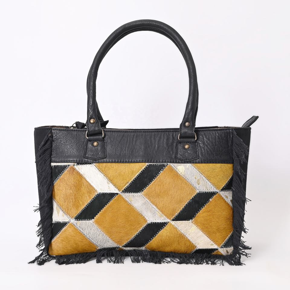Design:Cowhide Patched Azetic Front With Recycled canvas With Leather Handles