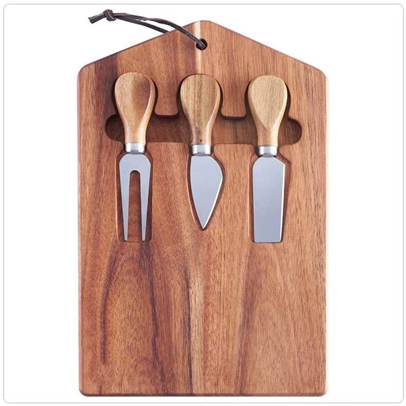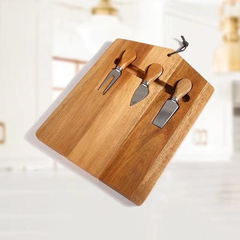 Latest Wholesale Small Acacia Wooden Cheese Charcuterie Boards and 3 Knives Set One Person Disposable for Kitchen Fruit Bread