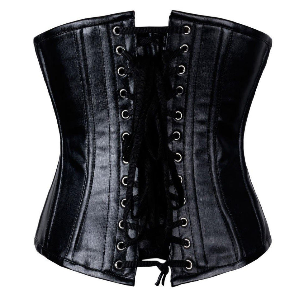 Latest Wholesale Women's Steampunk Black Leather Corset Gothic Lace Corset Top Steel Boned Front Button Appliques Feather