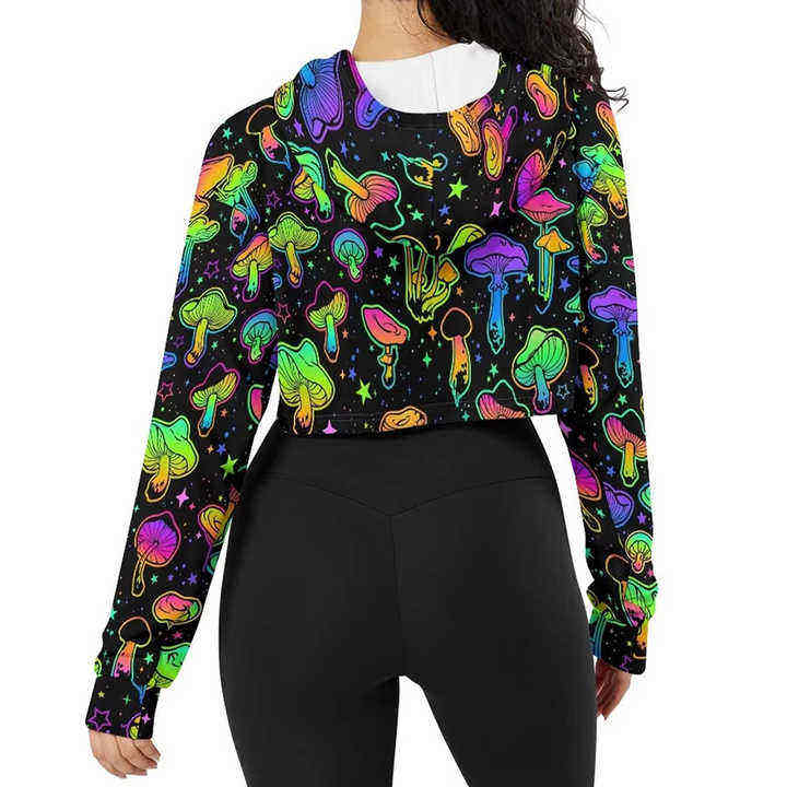 Latest Winter Fashion Women's Custom Logo Printed Hoodie Long Sleeve Crop Top 100% Cotton Solid Pattern