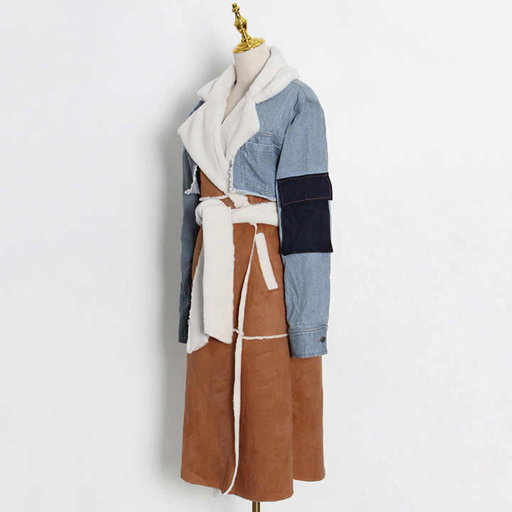 Latest Winter Ladies Varsity Jacket Fashionable Leather Coat Fur Decoration Long Clothing for Adults XL Size Plain Dyed for