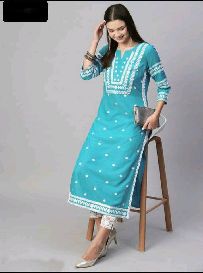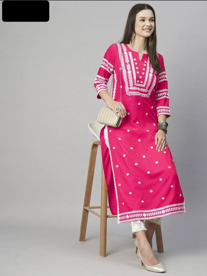 Latest Women Wear Fancy Ethnic Wear Ready to Wear Rayon Kurtis with Embroidery Work Wholesale Price Best Kurtis Collections