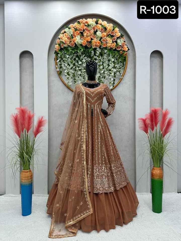 Latest Women Wear Heavy Thread Embroidery Sequence Work Anarkali Long Gowns Style Lehenga for Wedding and Festival Wear Clothes