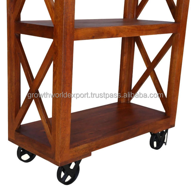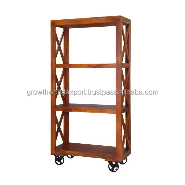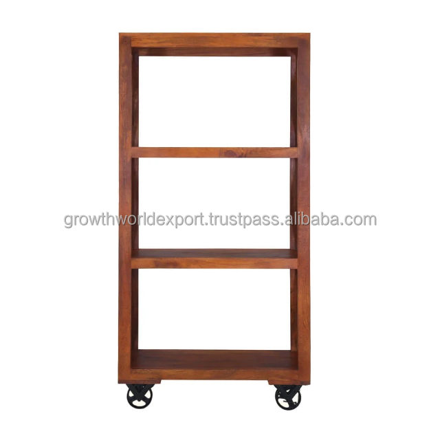 Product name:Industrial Mango Wood Bookshelf with iron wheel