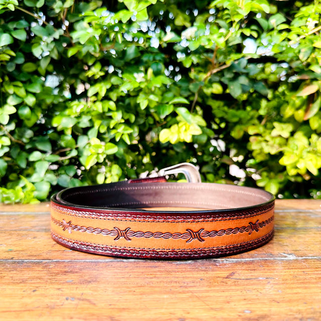 Latest Youth Western Cross Tooling Genuine Leather Belt Custom Length with Vintage Hand Carved Buckle