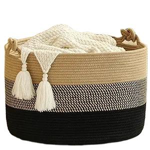 Latest and Attractive Round Woven Cotton Rope Basket Used for Nursery Laundry Toy and Blanket Storage Baskets